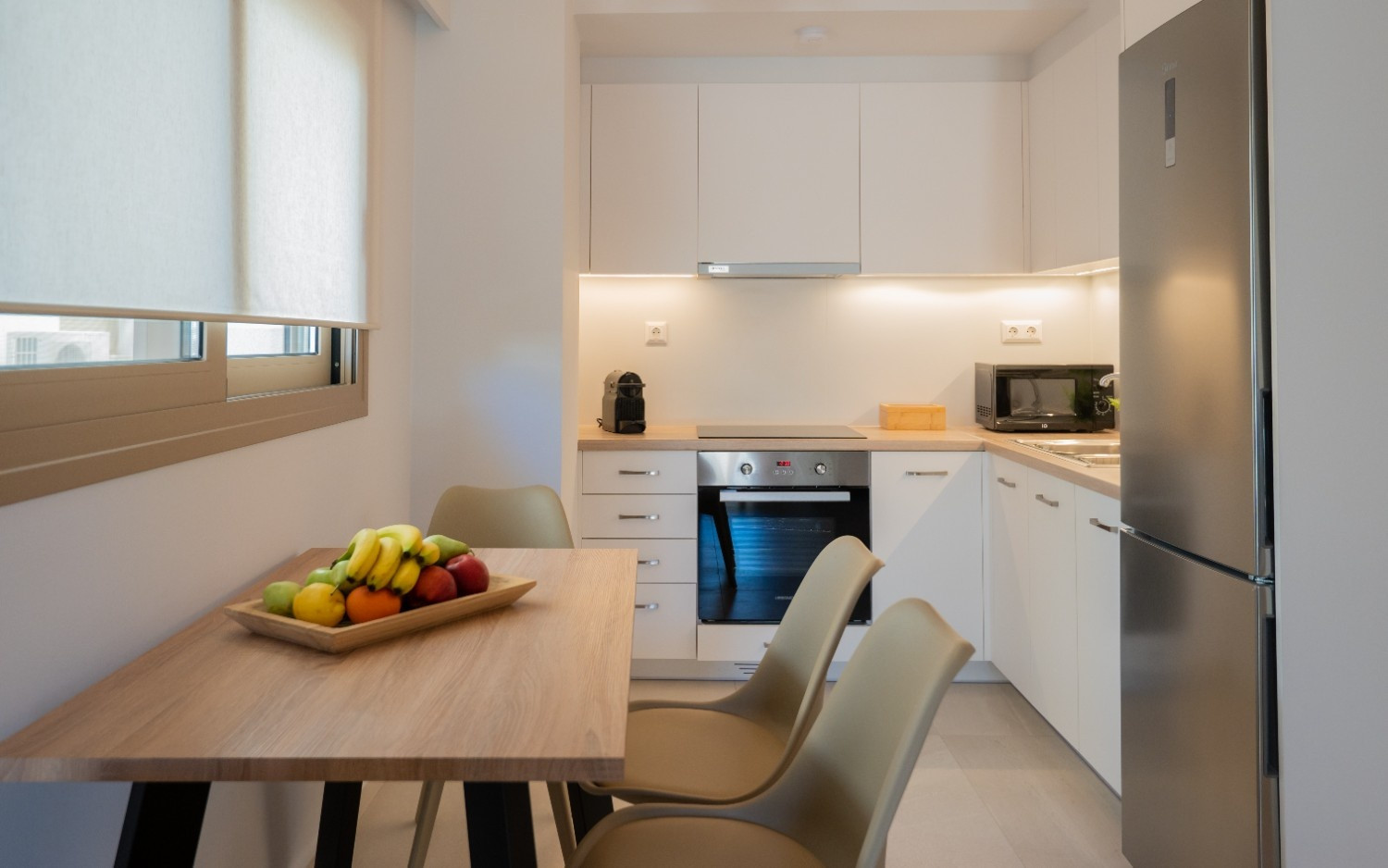 Kitchen: Fully equipped with oven, full-size fridge/freezer, and espresso machine.