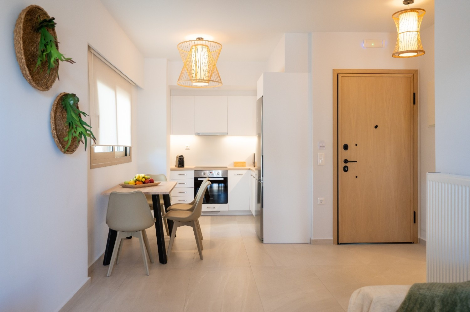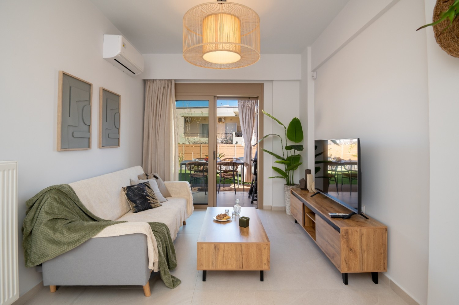 Living Area: Open-plan space with a comfortable sofa, Smart TV, and dedicated dining.
