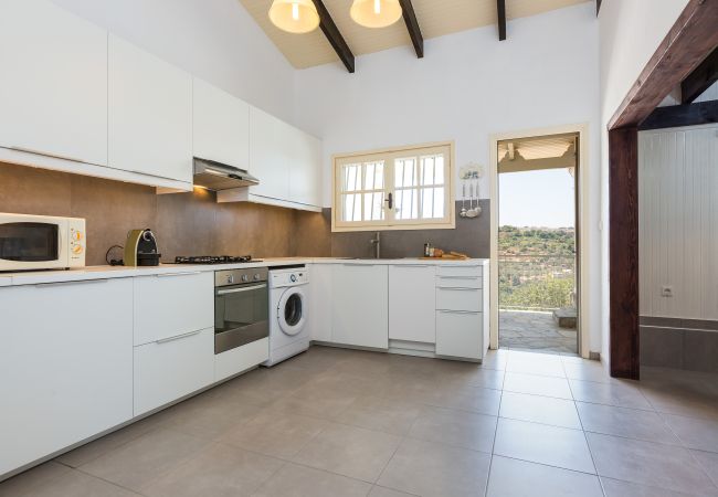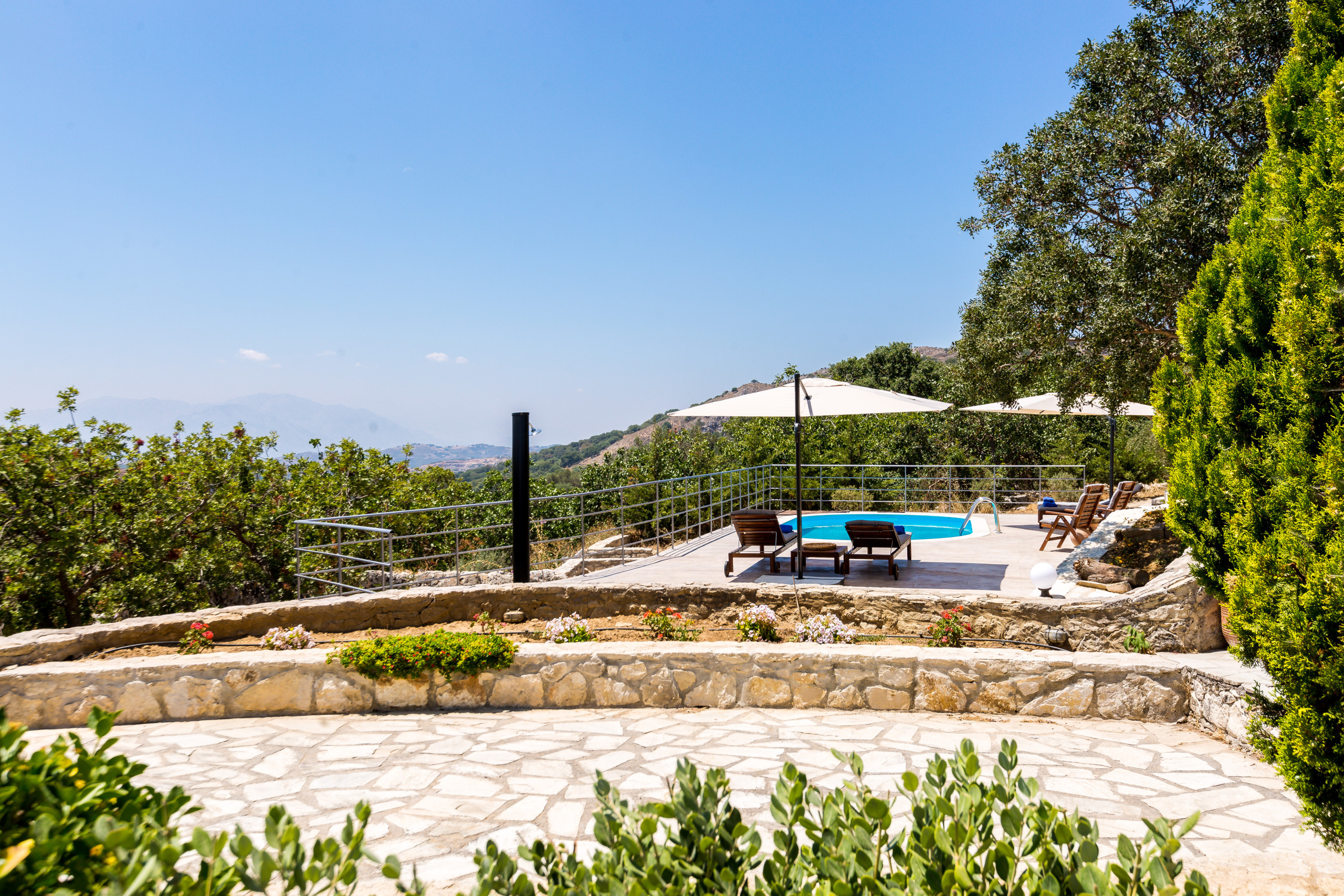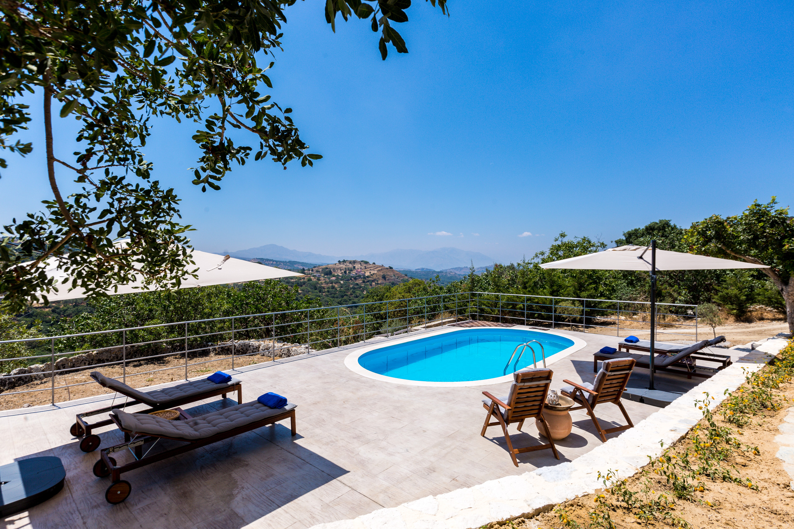 A rental car is strictly necessary to navigate the area and fully utilize the villa's strategic location between the north and south coasts. Due to the property's location within a large natural plot at the foothills of Mount Vrisinas, guests may occasionally encounter local insects or natural rural sounds.