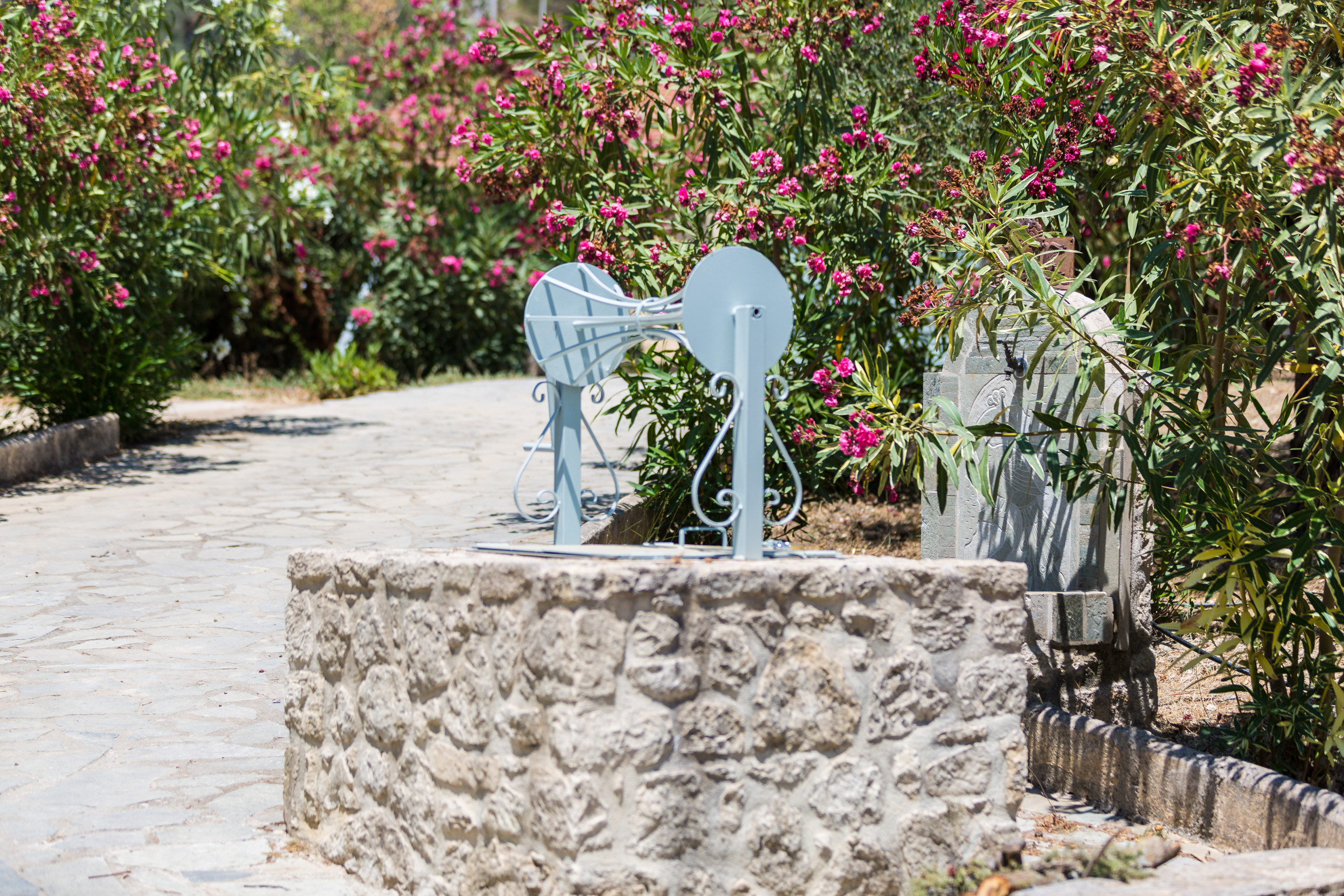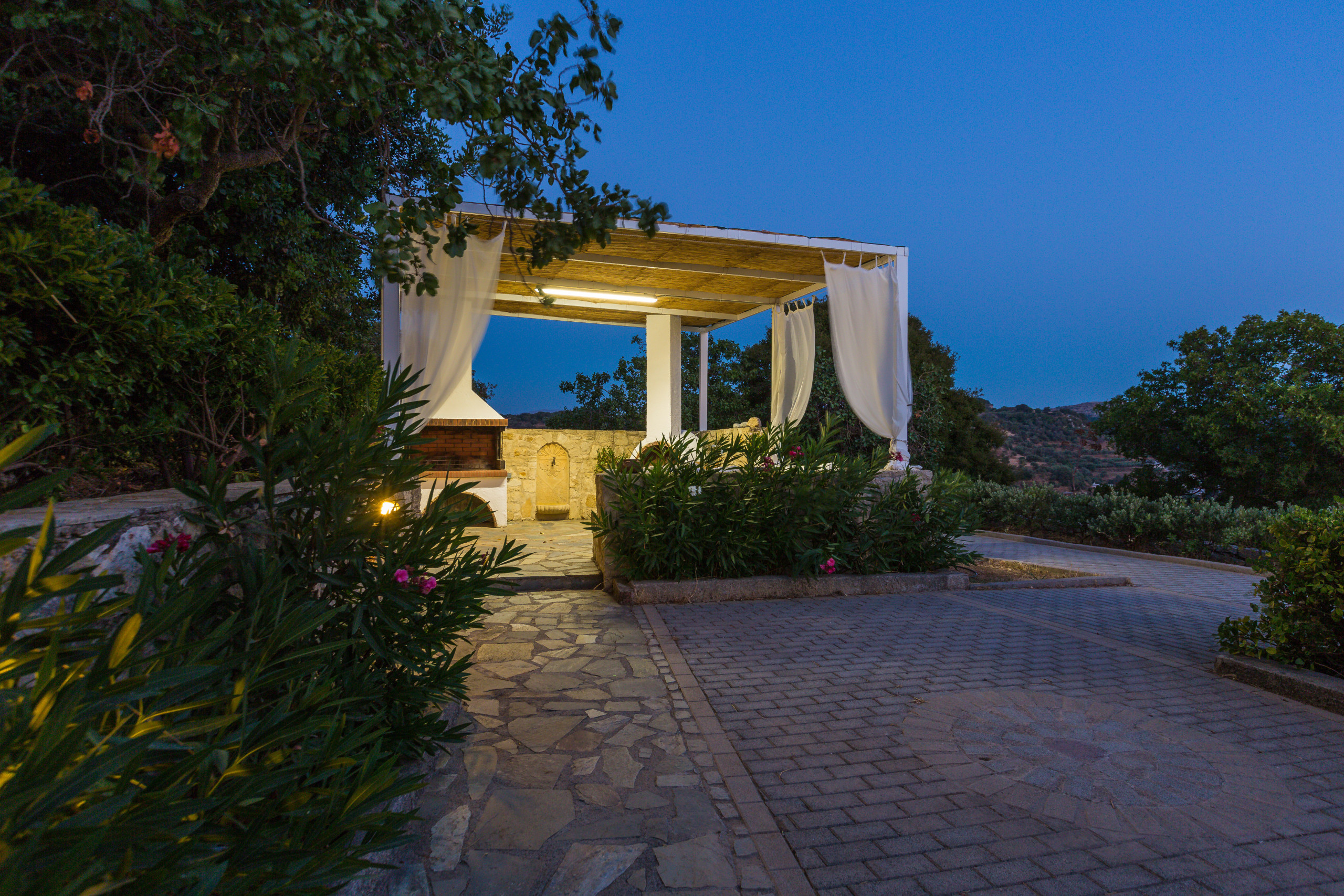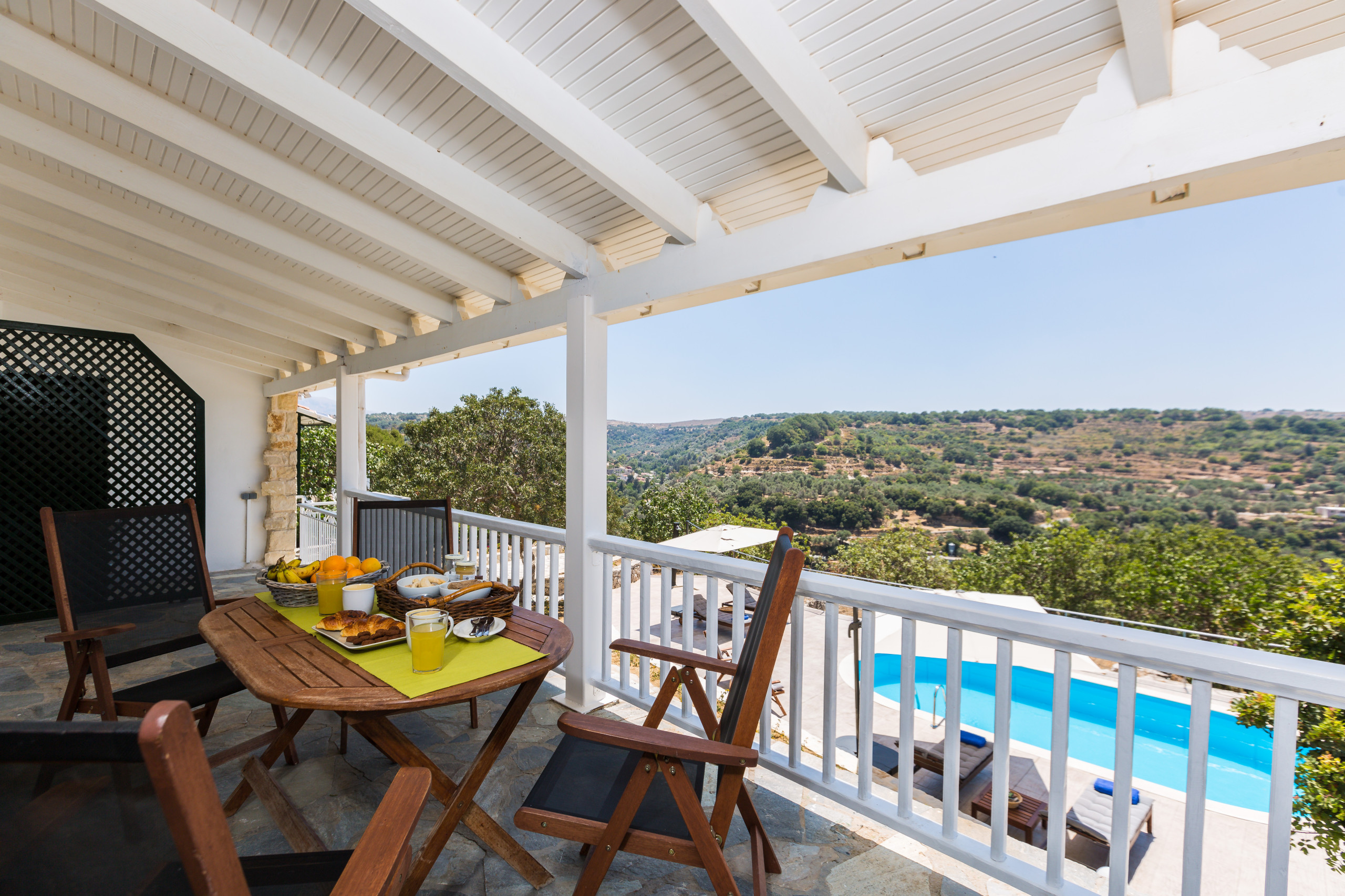 A rental car is strictly necessary to navigate the area and fully utilize the villa's strategic location between the north and south coasts. Due to the property's location within a large natural plot at the foothills of Mount Vrisinas, guests may occasionally encounter local insects or natural rural sounds.