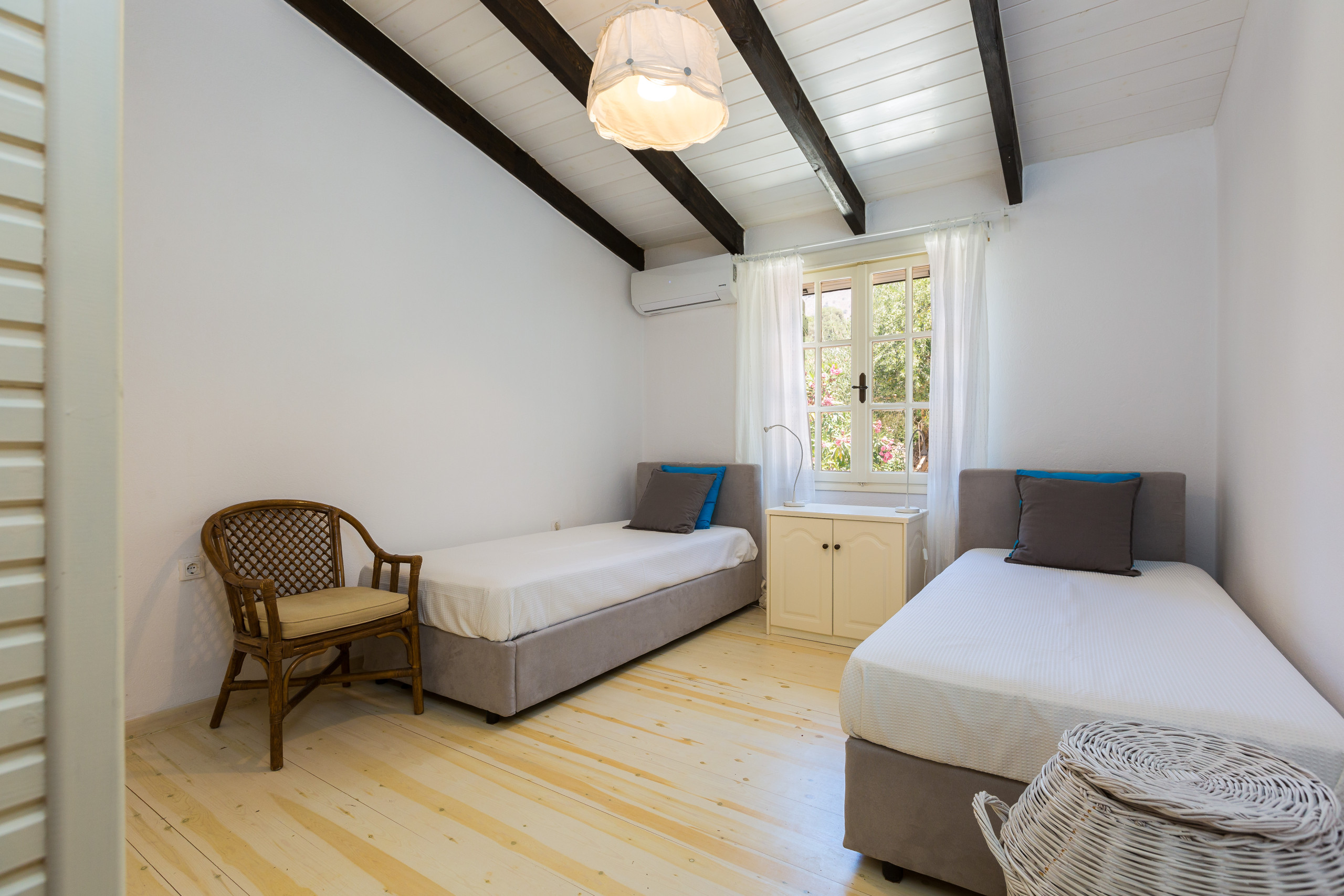 All bedrooms feature air-conditioning and quality linens. (Σημείωση: Εδώ συμπληρώνεις τα ακριβή μεγέθη, έχω βάλει ενδεικτικά Double)