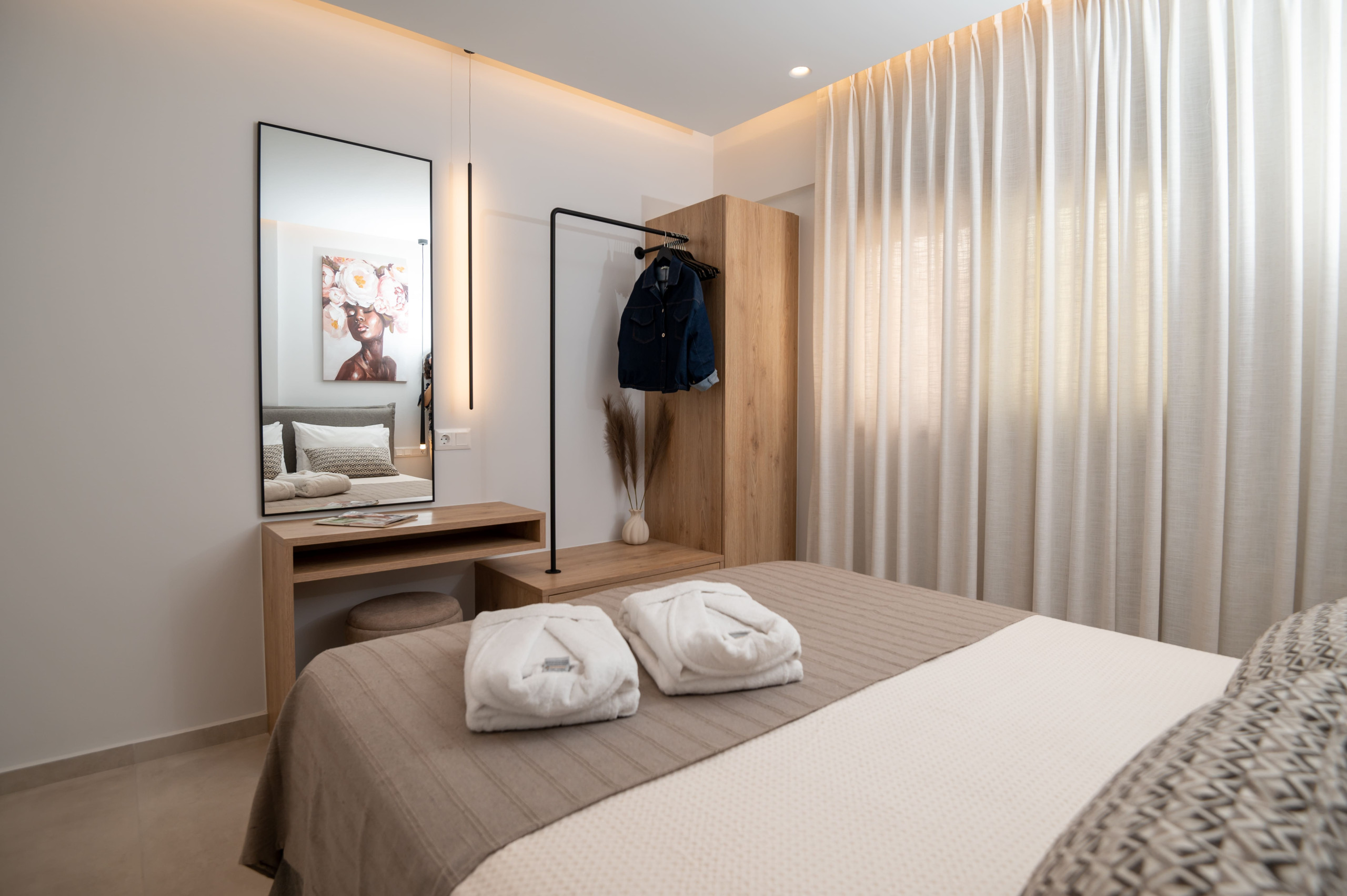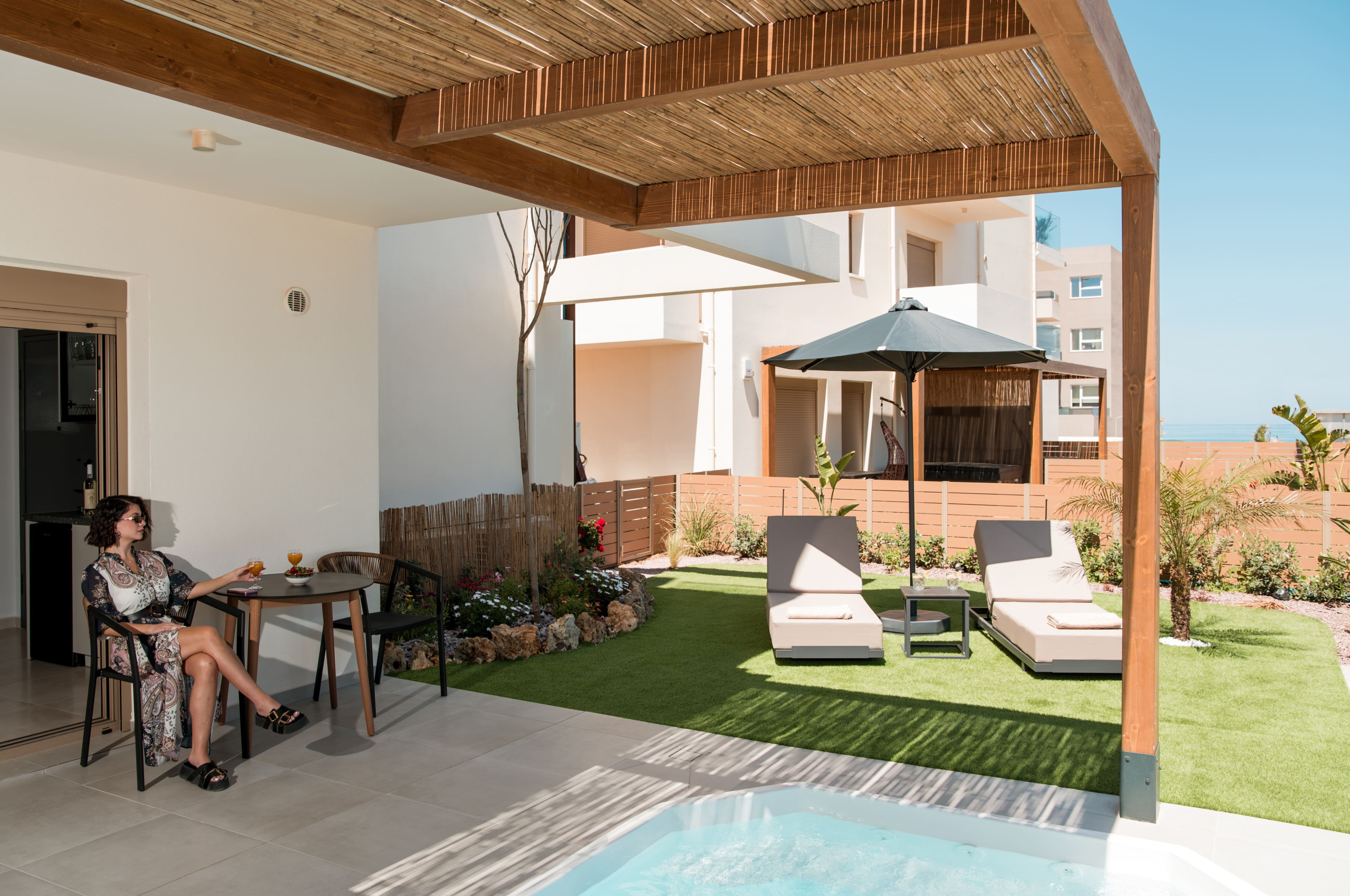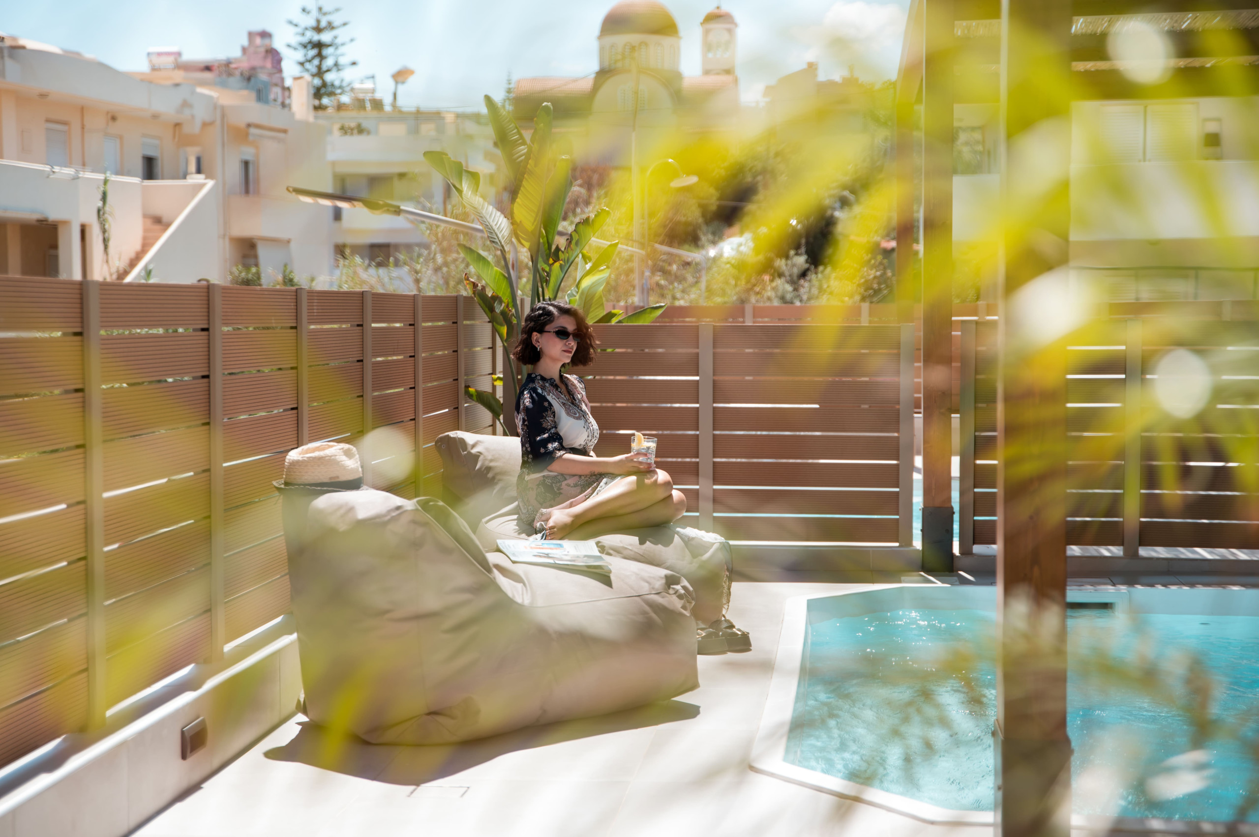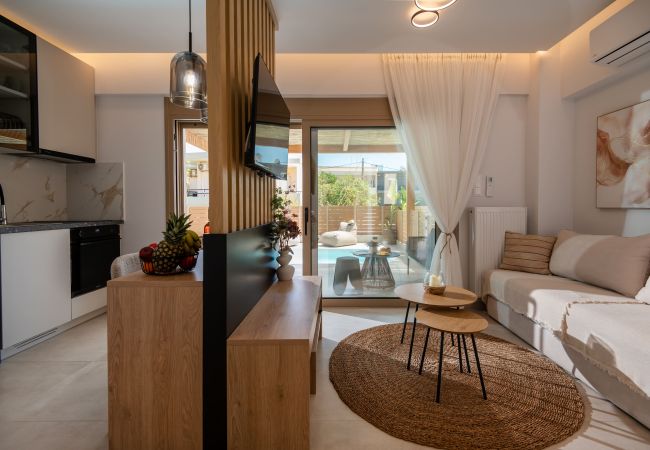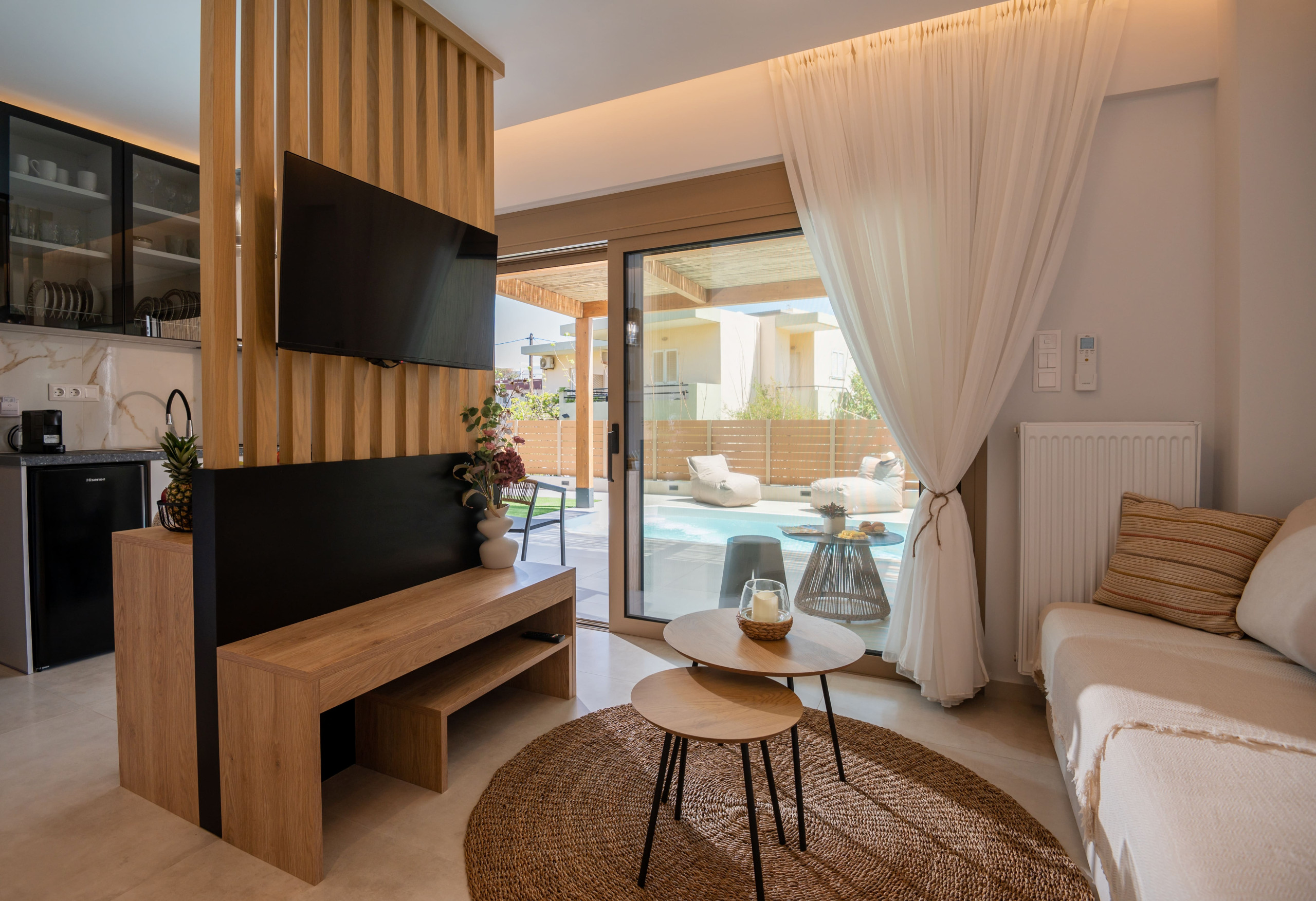 Located steps from Rethymno Beach, Azura Mare is a newly built 35 sqm design-led retreat. Curated for guests seeking elevated aesthetics in a compact footprint, this premium suite functions as a refined coastal base. It features a private, built-in heated mini pool and a bespoke kitchenette, blending immediate beach access (50 meters) with a secluded sanctuary environment and the rare convenience of dedicated on-site parking.