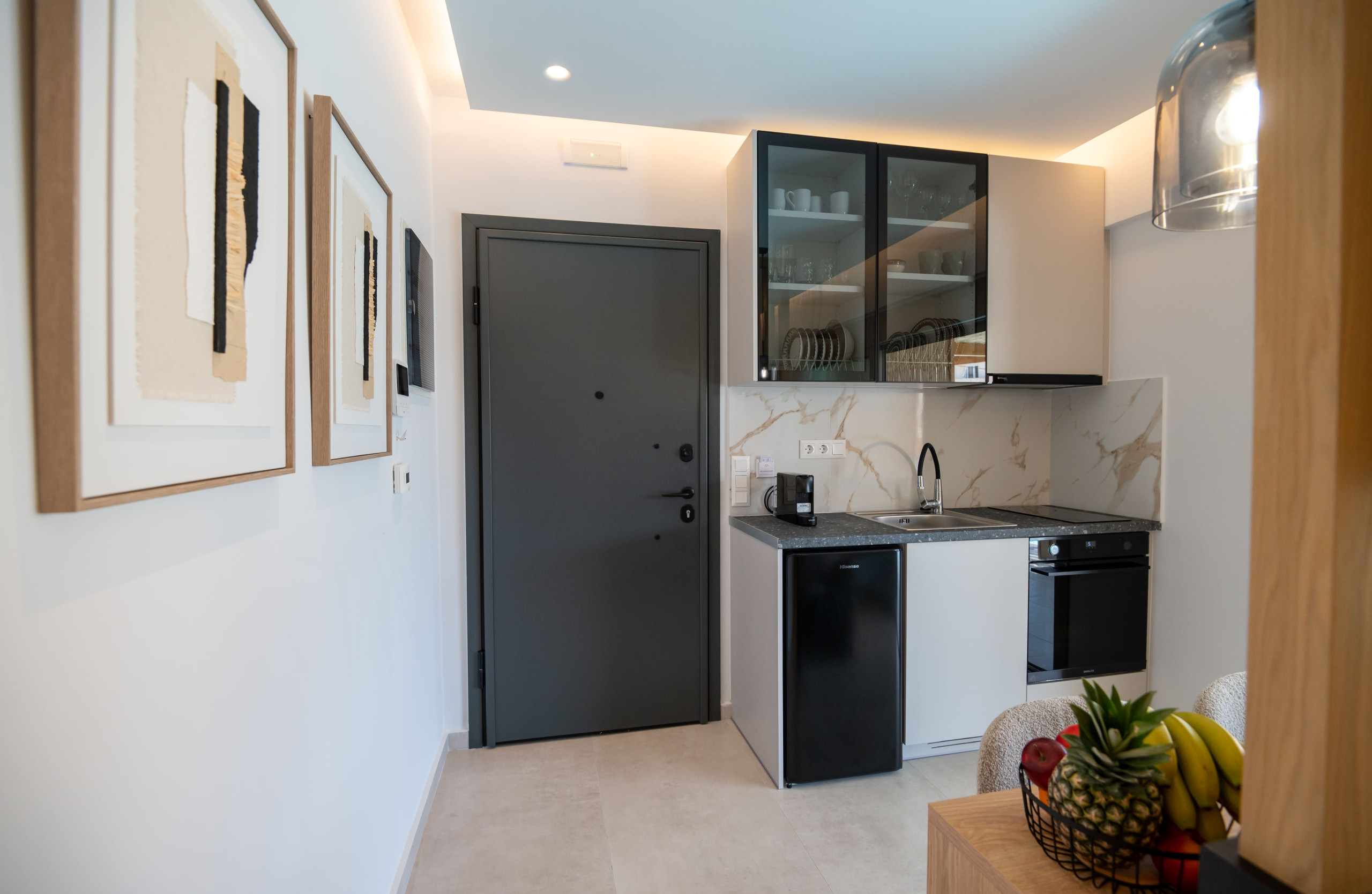 Kitchenette: Meticulously designed for simplicity, suited for light preparation rather than full cooking.