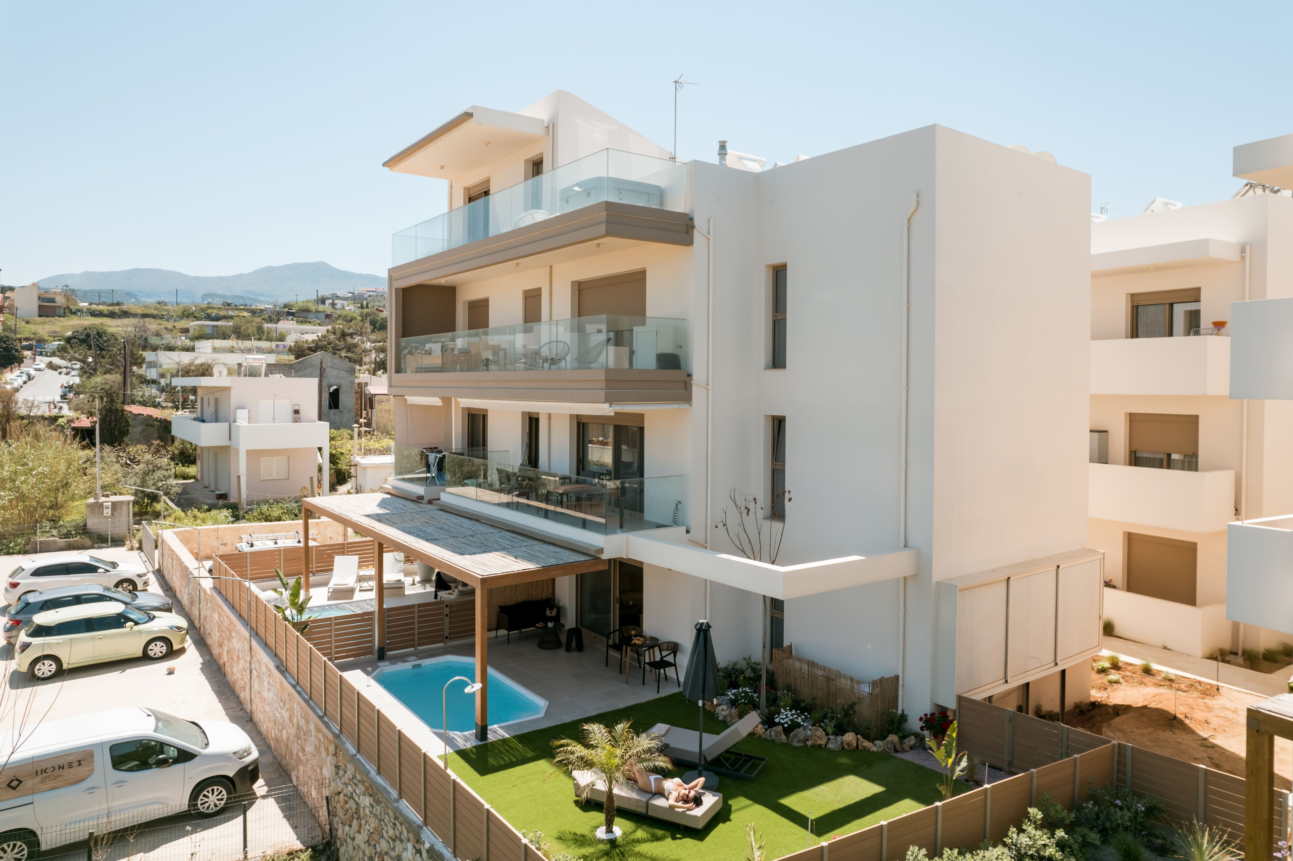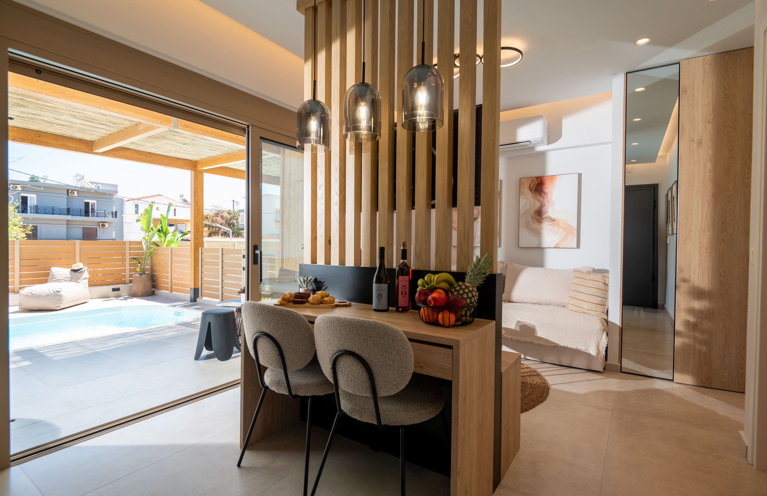 Located steps from Rethymno Beach, Casa Doma is a newly built 35 sqm design-led studio. Curated for guests seeking elevated aesthetics in a compact footprint, this premium property features a private built-in heated mini pool and a fully equipped modern kitchen. It functions as a refined coastal sanctuary, blending immediate beach access with explicit privacy and the rare convenience of dedicated on-site parking.