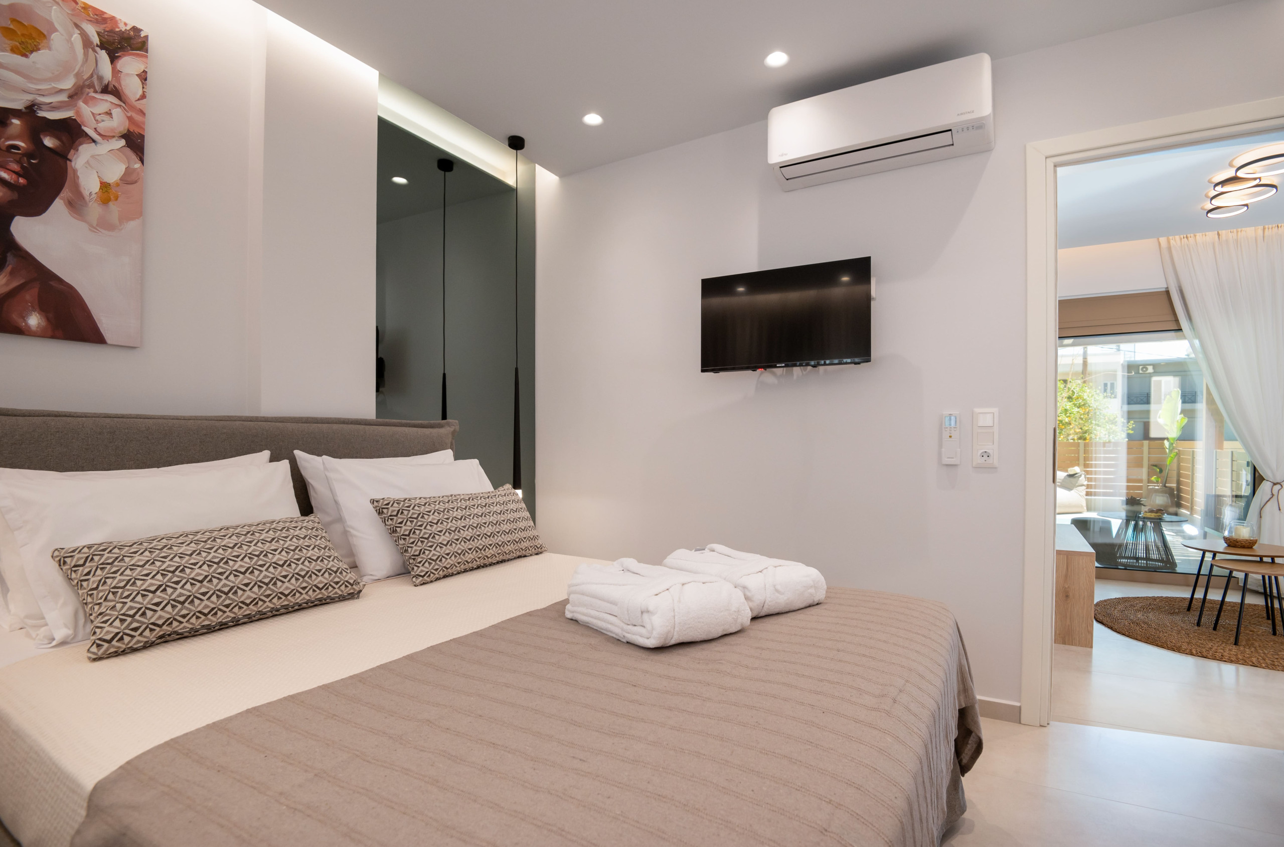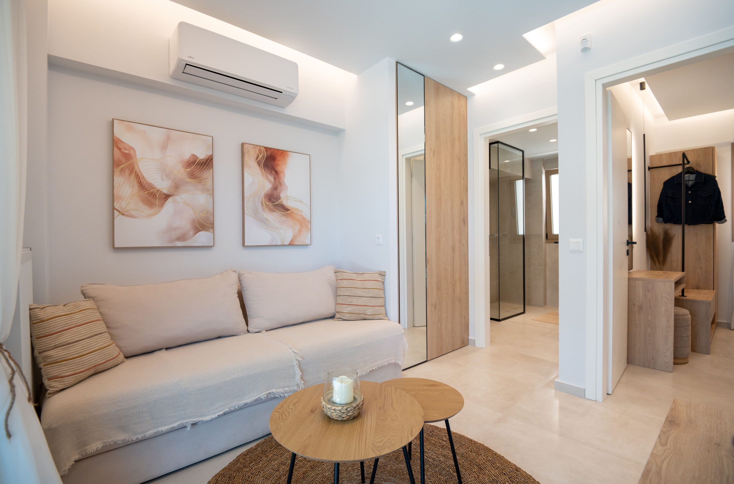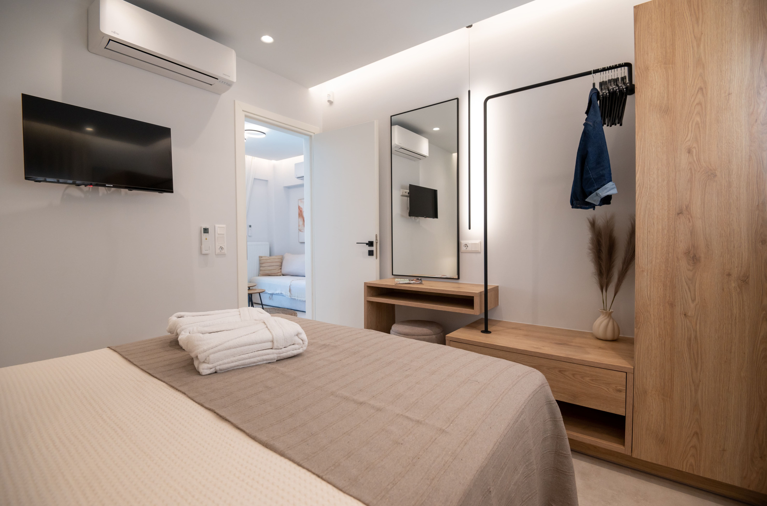 The 35 sqm floor plan is meticulously designed for simplicity as an open-plan studio. Given its ground-floor, central location near the beach, Rethymno Old Town and local amenities are within immediate reach, making a rental car strictly optional for daily exploration.